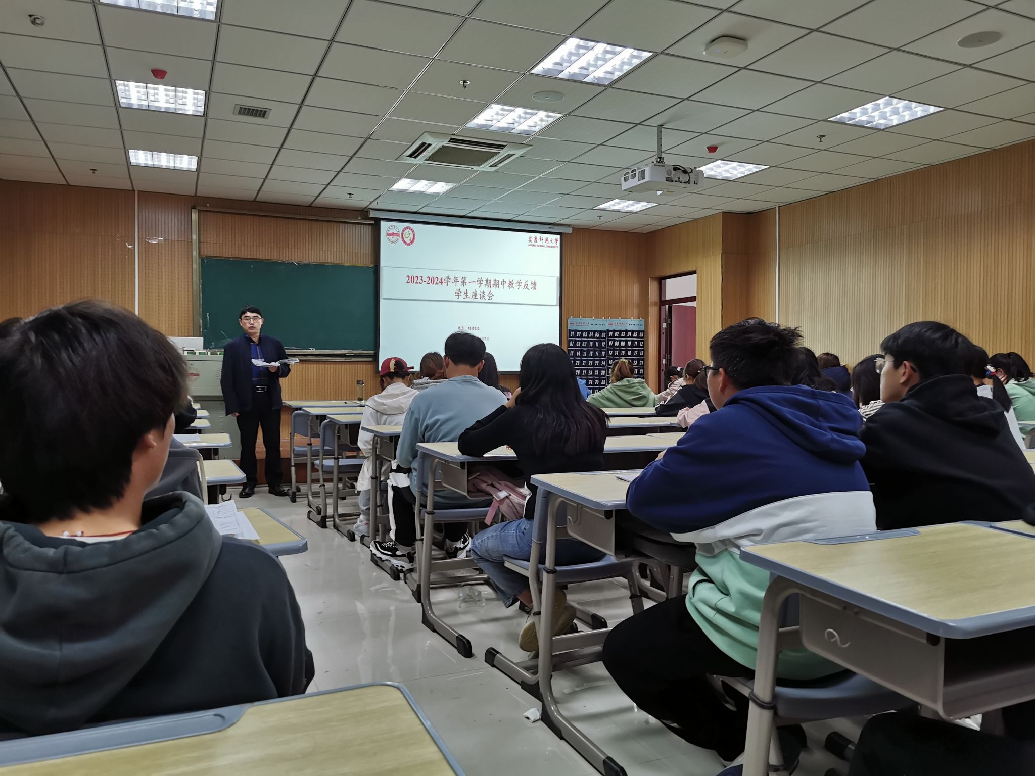 为积极落实学校期中教学检查工作要求,全面提升学院教学质量,我院于11月7日下午在M212教室开展了期中教学反馈学生座谈会。学院院长黄先军、校级教学督导员、院级教学督导员、教学秘书、教务员和各班级学生代表参会,会议由黄先军主持。