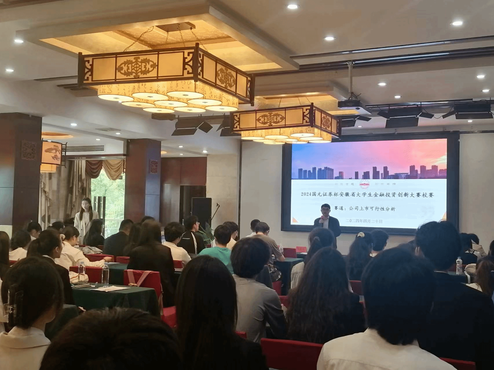 4月20日,2024“国元证券杯”大学生金融投资创新大赛校赛答辩会顺利落下帷幕,成功晋级现场赛的40支队伍均圆满完成答辩。本次答辩会邀请了校内外十余名专家担任评委,包括安庆市地方金融监督管理局吴其琨副局长,国元证券安庆分公司孔德亮总经理、营销总监陈祚祥、客户服务部姚辉经理等。