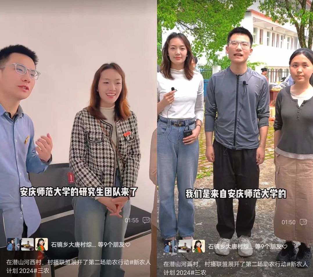 近日,在我院研究生实践导师、潜山市天柱山镇河西村驻村第一书记汪传华的引领下,由我院2023级国际商务专业研究生储瑞、张森茹和音乐学院2023级学科教学(音乐)专业研究生程亚玲组成的乡村振兴实践团队抵达河西村,参与由汪传华倡导,安庆地区直播达人共同参与的村播联盟第二场直播助农活动。此次活动中,3名研究生近距离观察了村播联盟的实施全过程,深度调研直播助农的现实需求、运营特点和保障要求,并亲身体验到村播联盟为激活农产品流通注入的新活力。