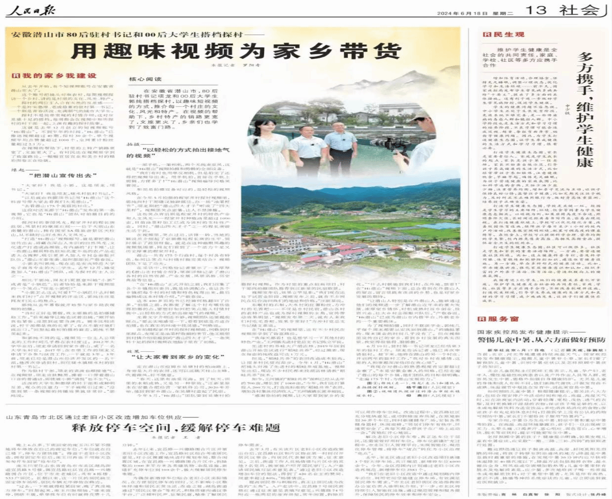 伟德国际victor·1946源自学子利用所学专业知识,积极投入到暑期社会实践中,《人民日报》(2024年6月18日 第13版)(我的家乡我建设)对我院2021级电子商务专业学生郭纯同学在社会实践中充分运用自身所学助力当地乡村振兴产业发展进行了报道。