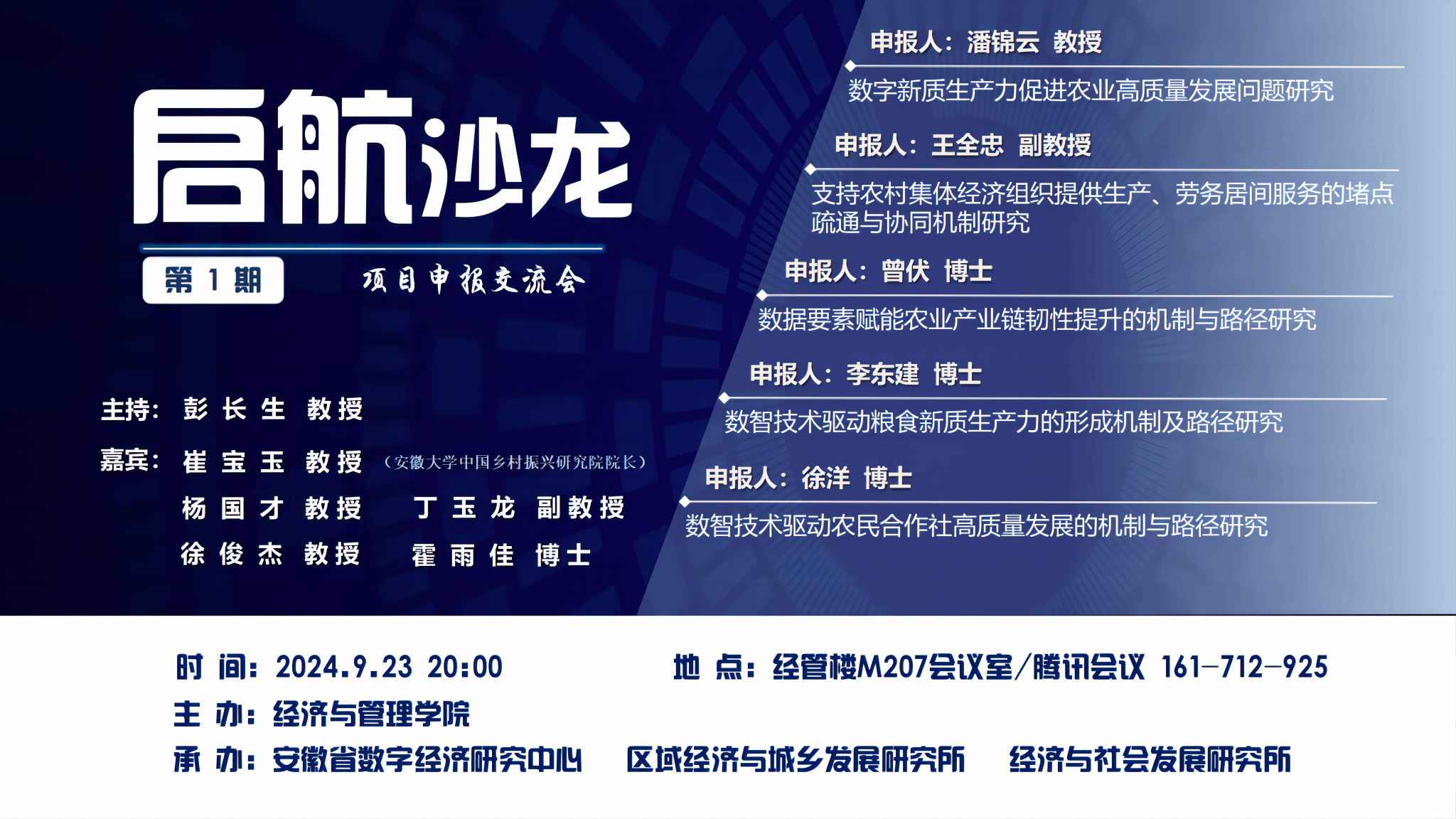 为进一步提升国家基金申报组织水平,营造全年开展、全员参与、全程跟踪的常态化辅导体系,9月23日,由伟德国际victor·1946源自策划创建的品牌活动“启航沙龙”顺利举办。首期沙龙由安徽省数字经济研究中心、区域经济与城乡发展研究所、经济与社会发展研究所联合承办,安徽大学中国乡村振兴研究院院长崔宝玉教授作为特邀嘉宾参与交流,沙龙由彭长生教授主持。