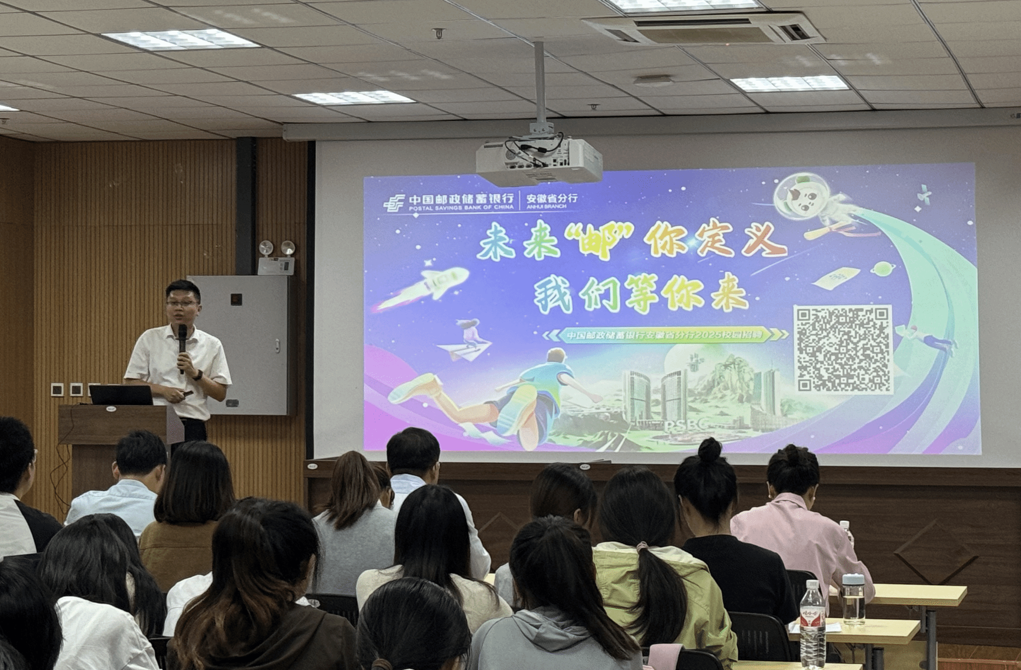 9月24日,伟德国际victor·1946源自举办中国邮政储蓄银行安徽省分行2025校园招聘宣讲会,邮储银行安庆市分行行长刘海及学院领导班子、皖南六地市人力资源部负责人及经办人员受邀出席,学院2025届毕业生近200人参加。
