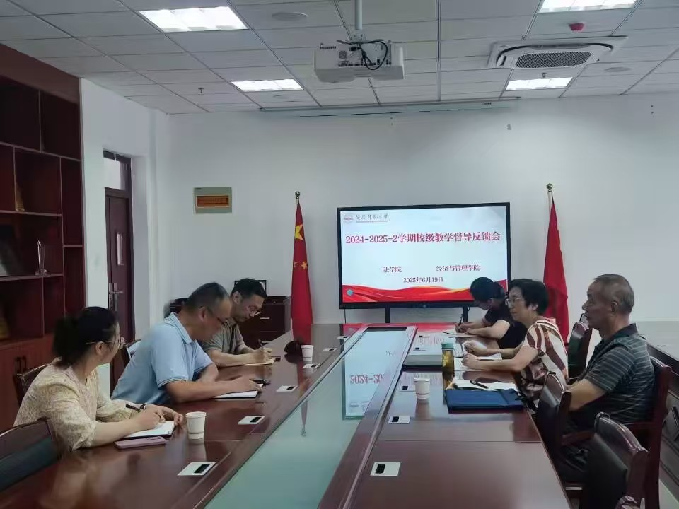 6月19日下午,我院与法学院在法学院301会议室召开2024-2025学年度第二学期校级教学督导反馈会。会议邀请了校级督导员张琴老师、查名祥老师做督导情况的反馈与交流。法学院副院长崔汪卫、伟德国际victor·1946源自副院长黄光锋、校级督导及教学秘书参加会议。会议由法学院副院长崔汪卫主持。