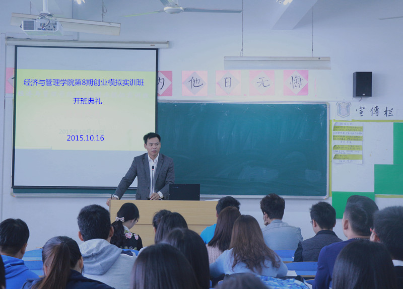 创业模拟实训班将创业知识与信息网络相结合,通过建立虚拟公司、模拟创业过程,以提升创业者的经营能力。在如今的“双创”时代,创业模拟实训班是对于在校大学生是不可多得的学习实践的机会。潘锦云副院长首先就创业培训和创业教育的意义做了说明。“我们希望通过创业培训,在各位心中播下创业的种子”。他期望全体学院通过培训班实训,学好创业知识,体验企业成长,为今后的就业创业打下坚实基础。