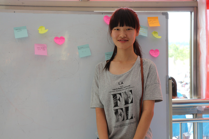 “我要考研”、“我要去西藏”、“我要好好读书孝敬爸妈”……在报到点一边展板上可以看到许多五颜六色的便利贴,这些都是报到新生写下的一句句的心愿。在9月10号晚上,一位来自四川的新生何美玲气喘吁吁地赶到报名点。工作人员得知今天正是她的十八周岁生日,工作人员当场给这个小学妹唱起了生日快乐歌。