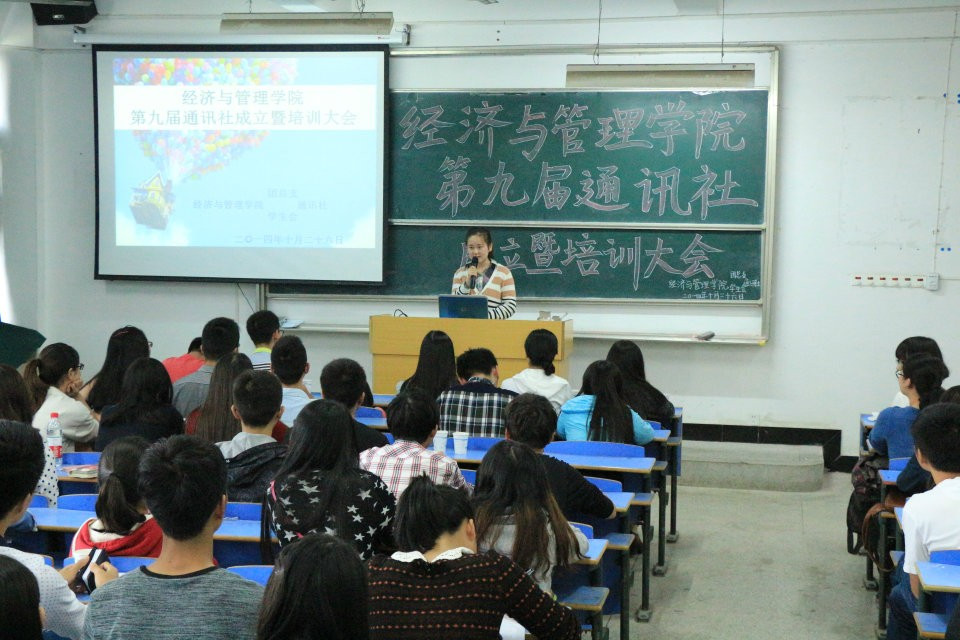 “你们今天走进文溯楼时有什么新发现?”10月26日下午,在文溯楼404教室举办的伟德国际victor·1946源自第九届通讯社成立暨培训大会上,校学生会通讯社社长何云凤演讲前提出这个问题。众人都摸不着头脑,疑惑地讨论,只有一个人给出了正确答案。一个问题引起大家的兴趣,“一名通讯社成员一定要具备良好的观察力度。”何云凤社长直接点明话题,顿时掌声热烈。接着以满足山村孩童阅读需求、由校学生会援建"爱心书屋"为例讲解写稿的要求,并展示了一系列摄影作品,同学们收获颇多。