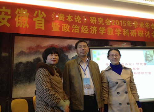 2015年11月13—14日安徽省《资本论》2015年学术年会暨政治经济学教学科研研讨会在安徽芜湖召开,我校汪时珍副校长携我院经济学教研室张时玲主任和储平平老师应邀参加。