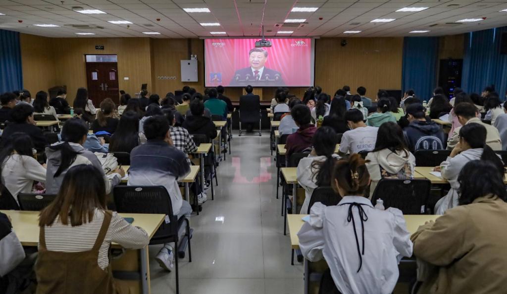 此次大会是在全党全国各族人民迈上全面建设社会主义现代化国家新征程、向第二个百年奋斗目标进军的关键时刻召开的一次十分重要的大会。直播中,习近平总书记总结了近五年来国家取得的重要历史成就,深入分析了国际国内形势,从战略全局上对党和国家事业作出规划和部署。在收听收看过程中,现场学生不时自发响起掌声。