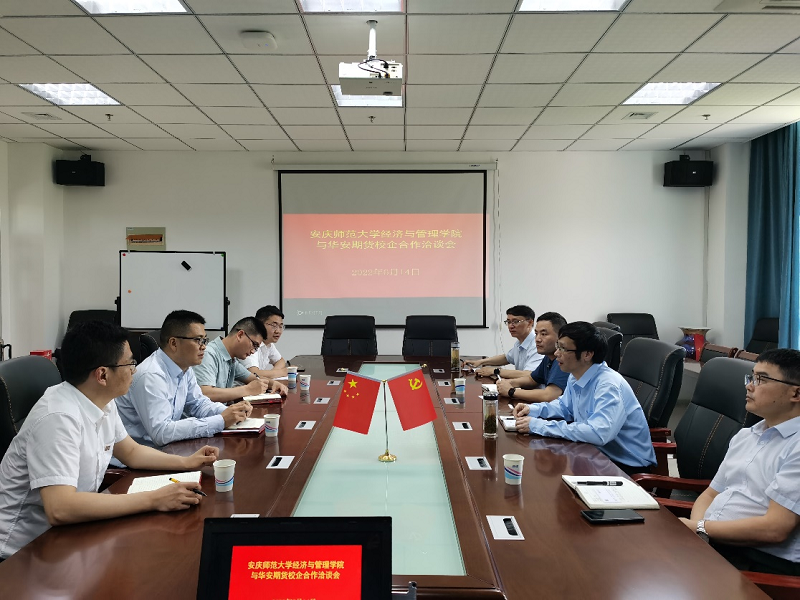 为了深入贯彻党的教育方针,全面推进校企协同育人,不断深化校企合作和产教融合,6月14日,我院与华安期货有限责任公司校企合作洽谈会在学院二楼会议室召开,华安期货总经理助理杜贤利、产业金融事业总部经理王飞、华安期货高级分析师安然、华安期货安庆分公司总经理何承金等一行4人,学院党委书记许俊杰、副院长黄先军、副书记周毅及金融工程专业负责人刘根节出席会议。