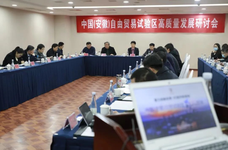 12月7日上午,中国(安徽)自由贸易试验区高质量发展研讨会在合肥市蜀山区召开。安徽大学党委副书记、常务副校长、中国(安徽)自由贸易试验区研究院院长陈诗一,安徽财经大学副校长冯德连,中国(安徽)自由贸易试验区研究院执行院长韩东亚,安徽省商务厅自由贸易试验区制度创新处处长王文孙,蜀山区委书记王海霞等领导出席会议并致辞。我院黄先军教授应邀参会。