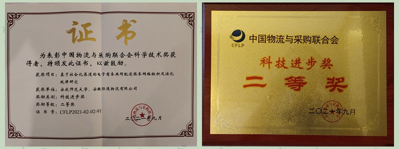 9月27日,第十四届全国现代物流科技创新大会暨2021年度中国物流与采购联合会科学技术奖颁奖大会在北京厦航嘉年华酒店举办,本次大会以“科技共融智慧共生产业共兴”为主题,交流展示最新物流科技成果和组织模式,并对本年度优秀物流科技成果和科技工作者予以表彰。我院徐俊杰教授、殷功利副教授、郑羽副教授三位老师应邀参会交流。本次大会上,由徐俊杰教授牵头申报的《基于社会化渠道的电子商务共同配送服务网络组织及演化规律研究》项目喜获中国物流与采购联合会科技进步二等奖。