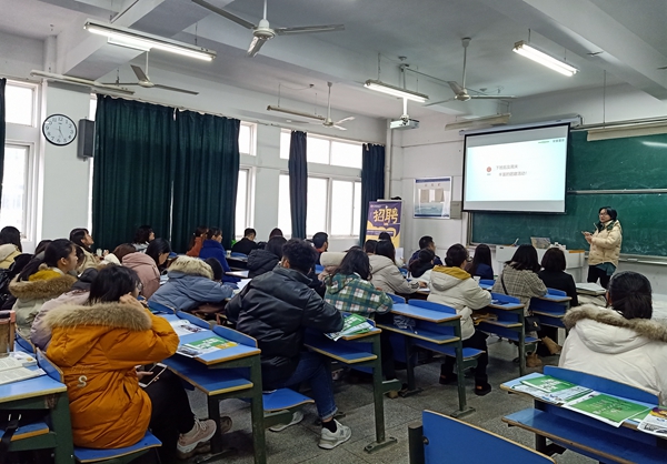 12月24日,正值毕业生考研结束和实习返校之际,学院在C401教室举办2019年学院冬季专场招聘会。本次招聘会遴选了具有良好合作关系的用人单位,共邀请到链家房产、安徽置地投资有限公司、苏宁电器等近10家用人单位前来参会。我院和外国语学院100余名学生参加此次招聘会。