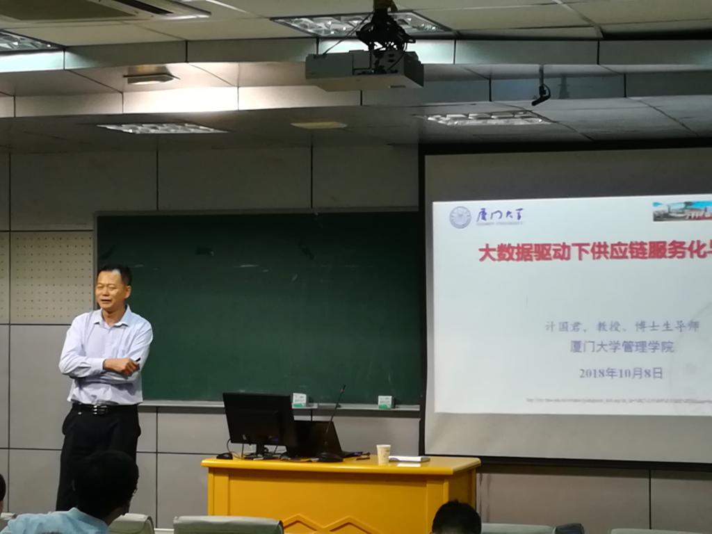 10月8日下午,应我院邀请,厦门大学计国君教授来到学院指导学科建设,并做了一场题为“大数据驱动下供应链服务化与创新”的学术报告。伟德国际victor·1946源自院长杨国才主持报告会,我院相关专业老师、研究生聆听了报告。