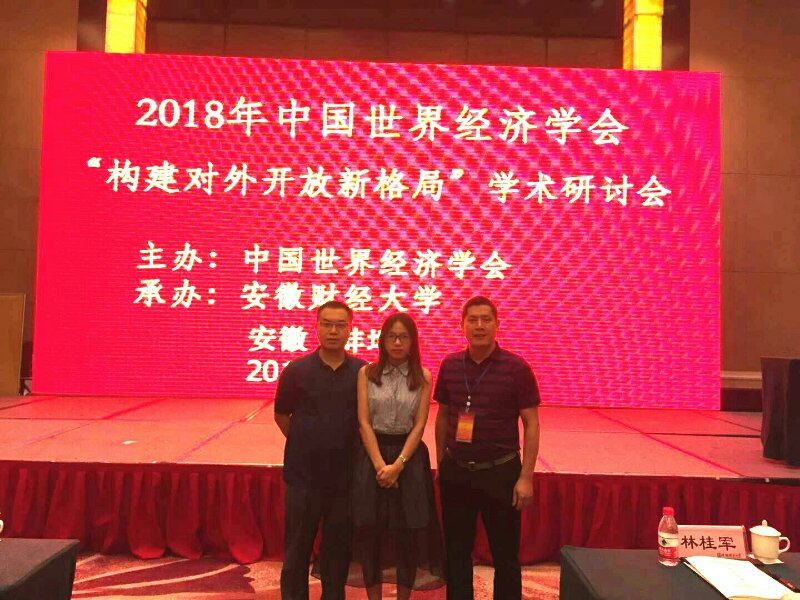 我院教师李裕鸿博士、汪颖颖老师、殷功利博士应邀参加2018中国世界经济学会“构建对外开放新格局”学术研讨会。研讨会由中国世界经济学会主办、安徽财经大学承办,并于9月8日在安徽财经大学举行。大会吸引了来自中国社科院、南开大学、复旦大学、南京大学、东南大学、浙江大学、对外经济贸易大学、安徽省社科院、安徽大学、日本神户大学等国内外著名高校研究机构。
