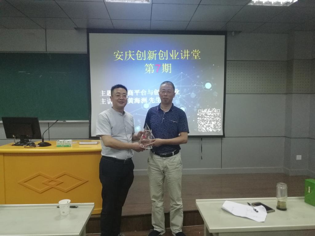 6月15日下午,伟德国际victor·1946源自在C406报告厅举办了第七期“安庆创新创业讲堂”。安徽和沐商业管理有限公司董事长黄海洲先生作客本次讲堂,分享自己创新创业心路历程。伟德国际victor·1946源自电子商务、市场营销等专业学生和部分教师到堂聆听,本次讲堂由学院党委书记李亦亮教授主持。