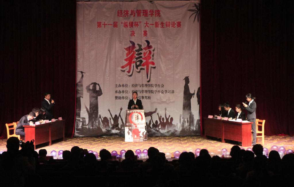 在精彩的开场舞后,辩论赛正式拉开帷幕。首先进行的是季军赛,双方围绕“校园驾校竞争是利大于弊还是弊大于利”展开激烈辩论。辩手引经据典,针锋相对,面对反方三辩“学车价格低,服务质量又如何保证?”的质询,正方梦之队以“校园驾校竞争增加了驾校资金收入使得服务质量得以提升,也促进资源的合理配置”有力的进行回答反击。