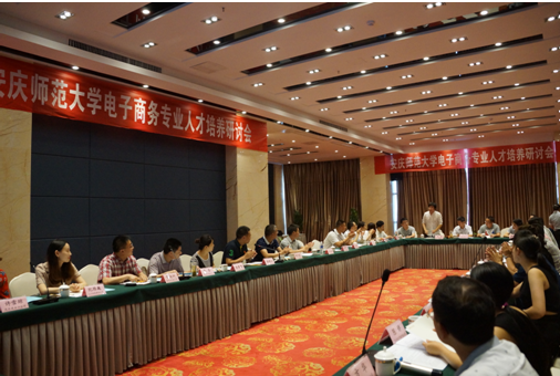 本次会议邀请了30余家电子商务及相关企业,共同商讨电子商务专业人才培养事项。会议得到了安庆市商务局、中国人民银行安庆支行、芜湖三只松鼠有限公司,以及网络科技和电子商务企业的重视和参与。李亦亮书记介绍了学院专业建设和人才培养的发展过程,希望企业在人才培养方面进行合作和相互支持。徐俊杰教授介绍了电子商务专业申报的情况和人才培养方案的制定思路,潘锦云教授谈到了人才培养方案制定过程中企业参与的重要性和实施路径。