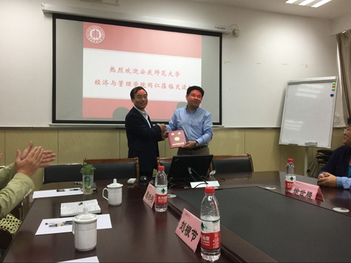 调研交流会上,杨国才院长向华东师范大学经济学院与会领导介绍了我院专业建设情况,并就金融工程、国际经济与贸易专业的建设方案与华东师范大学经济学院与会人员开展了交流,重点讨论了课程设置与开设、实践教学、专业实习与毕业论文写作等内容。为加强交流合作,华东师范大学经济学院向杨国才院长颁发了兼职教授聘书。我院调研组参观了华东师范大学金融、国际贸易模拟实验室。