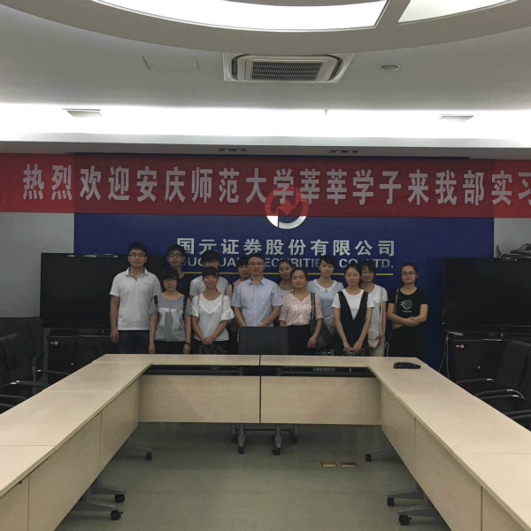 为了提高学生的专业素养,培养学生的实践能力,2016年7月18日,伟德国际victor·1946源自2013级金融工程专业12名学生在金融工程教研室主任刘根节博士的带领下赴国元证券安庆营业部,开启为期一个月的暑期实习之旅。