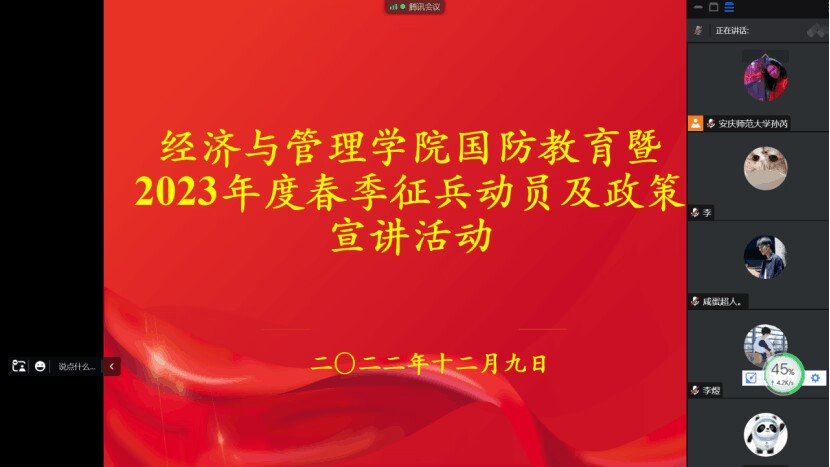 会后,学院组织180余名毕业班男生参加国防教育暨2023年度春季征兵动员及政策线上宣讲活动,学院征兵专管教师就《bv1946伟德大学生参军入伍指导手册》、征兵入伍优惠政策以及全国征兵网报名操作等进行了详细解读。(图文:孙芮;审核:周毅)