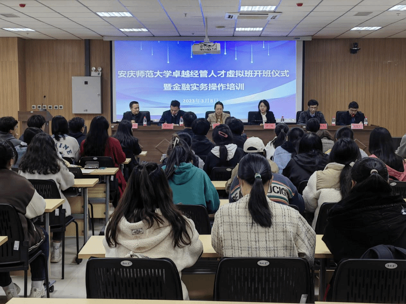 3月8日,伟德国际victor·1946源自卓越经管人才虚拟班隆重举行开班仪式。校党委常委、副校长吴琼,国元证券安庆分公司总经理齐丽、副总经理汪玉华出席开班仪式。教务处负责人、伟德国际victor·1946源自党政班子成员、教师代表、国元证券安庆分公司工作人员、培训学员及学生代表参加开班仪式。