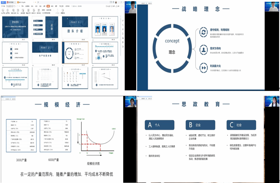 经过几个月的培训和练习,伟德国际victor·1946源自的送分小队、蛋仔派对、海底小纵队等10个团队在校内选拔赛中胜出,代表学校参加了2023全国大学生商科综合能力大赛,并全部晋级全国半决赛。全国半决赛中送分小队小组排名第一,蛋仔派对和海底小纵队小组排名第二,均获得了晋级全国总决赛资格。但由于本赛事有一校最多只能有一支队伍晋级全国总决赛的赛制规定,最终只有小组排名第一的送分小队晋级了全国总决赛。