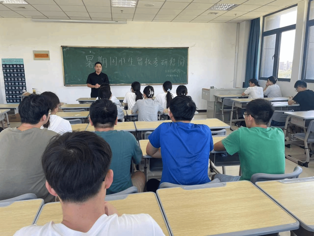 周毅对留校学生表达亲切慰问,对暑期留校辛苦备战的考研同学的刻苦精神给予充分肯定,表示学院将尽最大努力为考研学子创造良好的复习条件 ,并对同学们提出了三点建议:一是要有计划地复习。厘清发展方向,锚定考研目标,找准自身定位的同时做好考研规划;二是要有耐心,不要半途而废,坚持到底就是胜利。三是要注意劳逸结合,规律作息,适当调节考研压力。