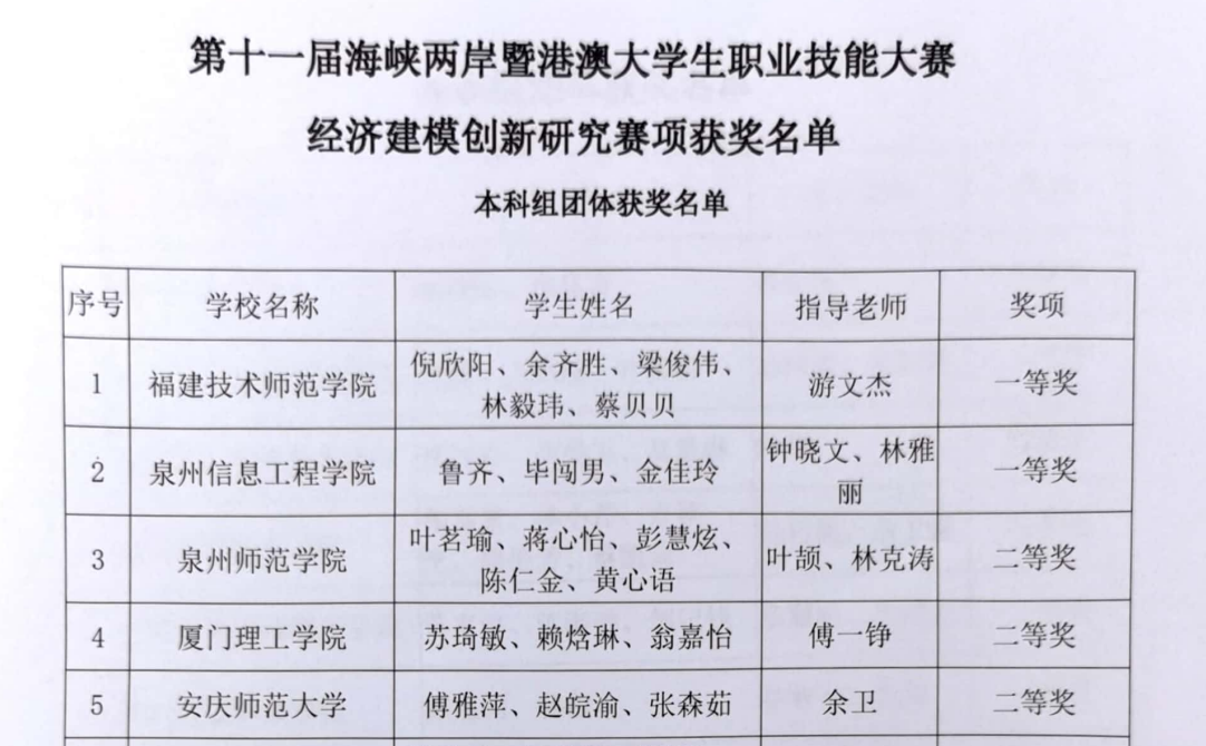 我院研究生团队获得第十一届海峡两岸暨港澳大学生职业技能大赛“经济建模创新研究竞赛”二等奖