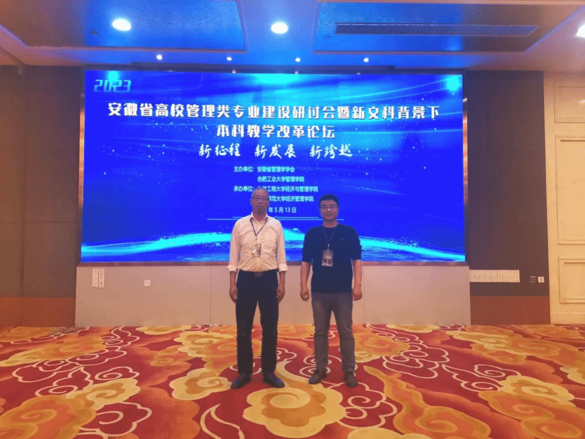 5月13日,由安徽省社会科学界联合会和安徽省教育厅高等教育处共同指导,安徽省管理学学会和合肥工业大学联合主办的“安徽省高校管理类专业建设研讨会暨新文科背景下本科教学改革论坛”在芜湖市举行。来自省内外高校的领导、专家、骨干教师近200人参加了此次会议,学院李亦亮教授、梁培培博士应邀参会。