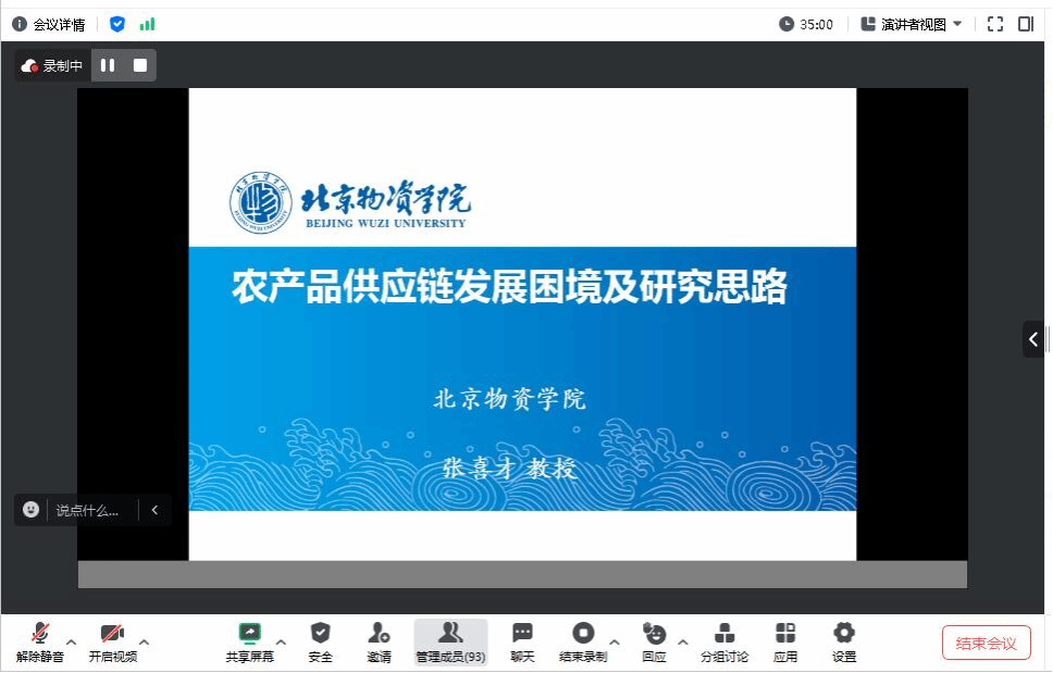 9月16日晚,由bv1946伟德科研处、伟德国际victor·1946源自联合主办,bv1946伟德数字经济研究中心承办的“经管有道”第2期开讲。北京物资学院商学院张喜才教授受我院邀请,通过线上方式分享了题为“农产品供应链发展困境及研究思路”的学术报告,学院青年老师、研究生及相关专业本科生共90余人参加了交流活动,报告会由徐俊杰教授主持。