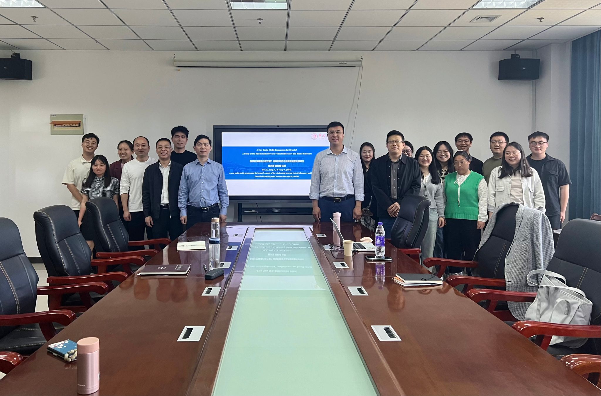 4月16日,由科研处、伟德国际victor·1946源自联合主办,安徽省数字经济研究中心、伟德国际victor·1946源自研究生党支部承办的“经管有道”第26期学术报告会开讲。本期活动的主讲嘉宾为华侨大学杨洪涛教授,报告题目为“品牌社交媒体的新方案?虚拟影响者与品牌跟随者关系研究”。学院部分教师和研究生到场聆听,报告会由徐俊杰教授主持。