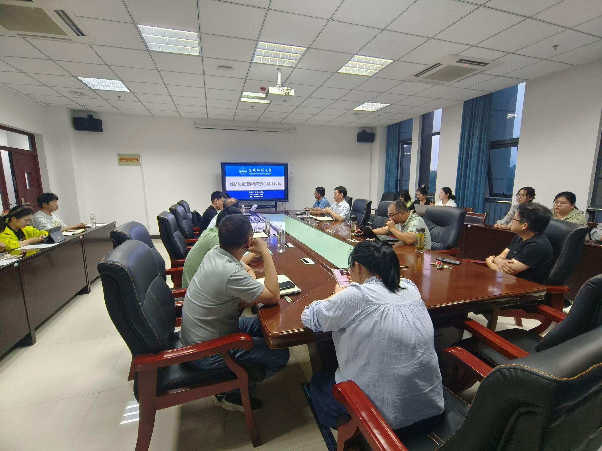 5月26日晚,学院第14期学术沙龙在M207顺利举行,院长徐俊杰、副院长梁培培、杨国才教授、彭长生教授、甄德云副教授、吕有清博士、张云东博士、余卫博士,2023级以及2024级全体硕士研究生出席了本次活动,活动由杨国才教授主持。