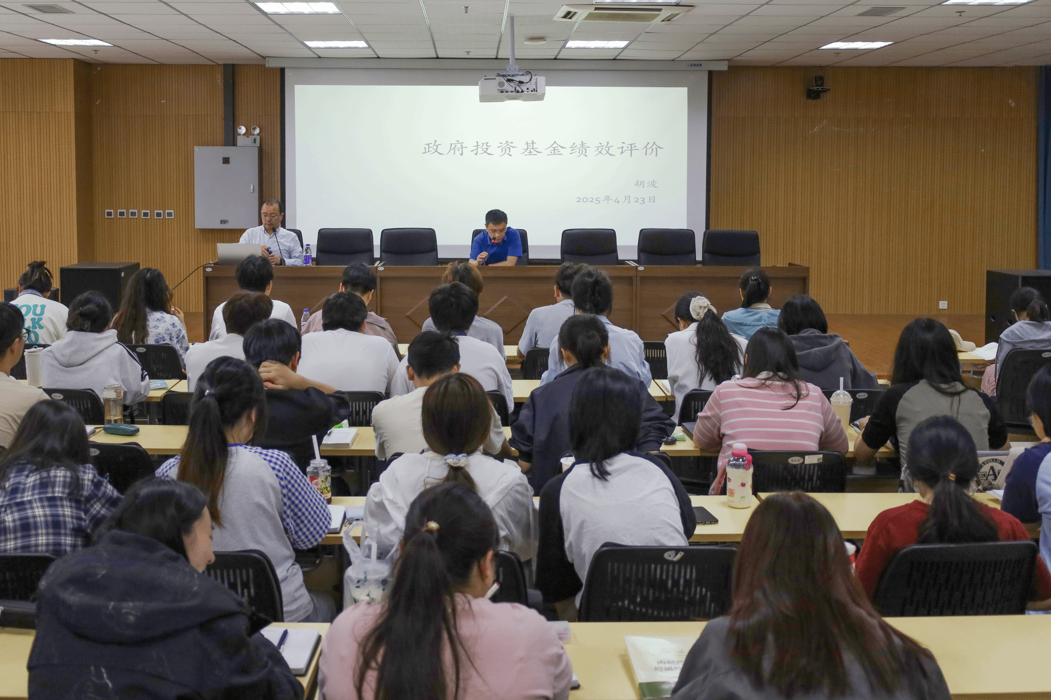 4月23日下午,由bv1946伟德-安庆市财政局预算绩效管理联合实训基地策划、伟德国际victor·1946源自牵头开设的《预算绩效管理》系列课程第七讲开讲。本次课程特邀中国人民大学财政金融学院副教授、圆点智汇高级顾问胡波,以“政府投资基金绩效评价”为主题展开专题讲授。我院师生与市财政局代表等百余人到场参与学习。