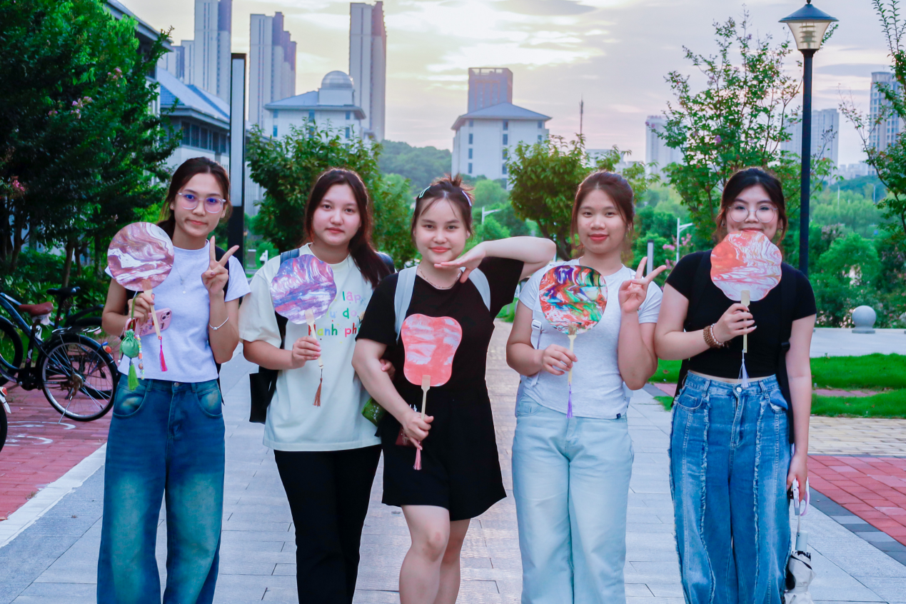 “三二一,茄子!”五位来自越南的女留学生站在伟德国际victor·1946源自门前,面带笑容摆出各具特色的造型。她们腰间佩戴香囊,手中高高举起亲手制作的精美漆扇。随着相机“咔嚓”一声轻响,这一画面被永久定格。