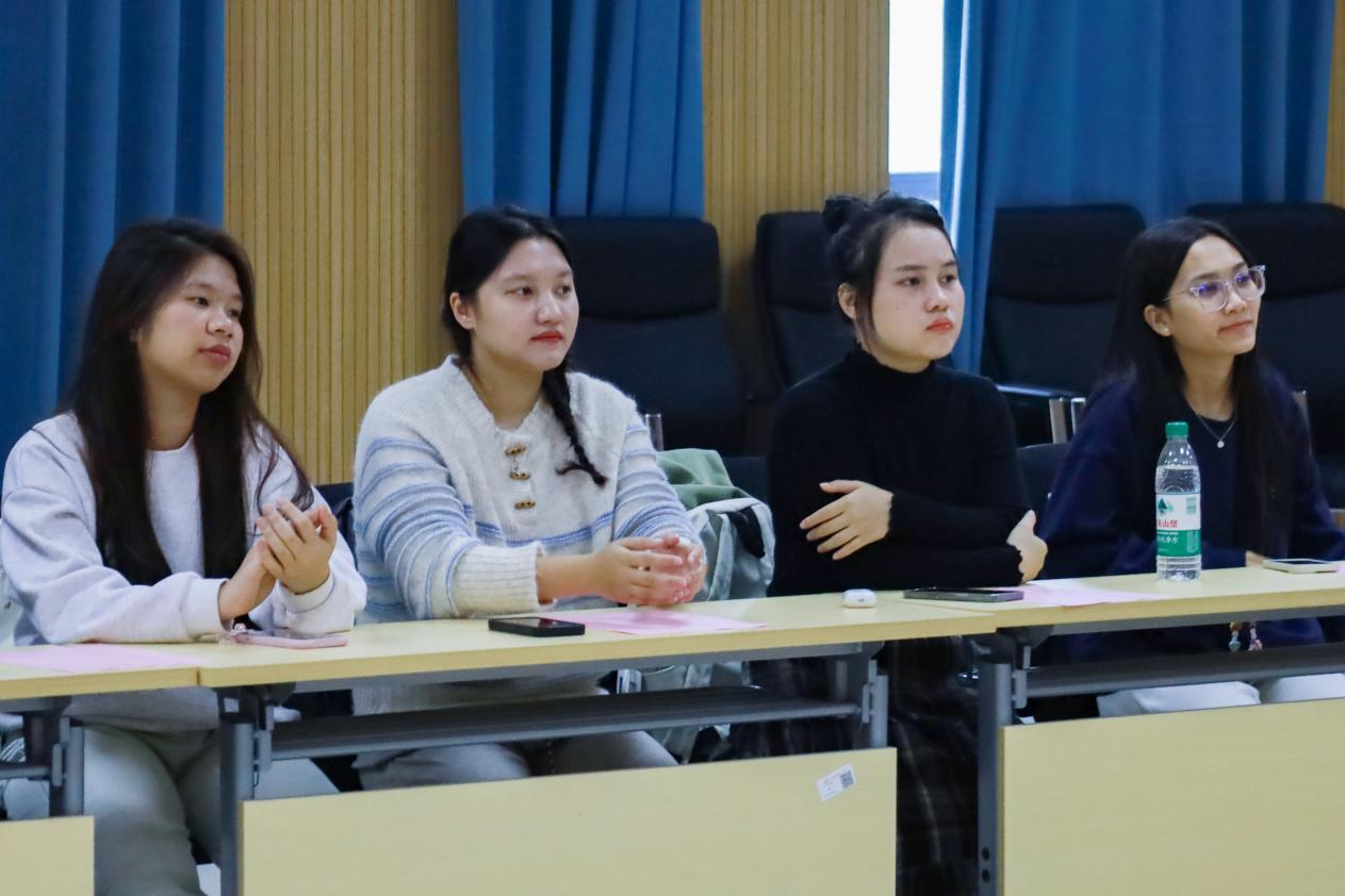 新生代表、越南籍留学生阮皇明舒分享了自入学以来的感受,表达了对学习汉语和专业知识的坚定信念与决心。在随后的自由交流环节中,师生互动积极踊跃,现场气氛热烈融洽。